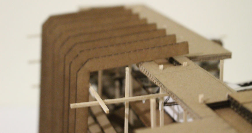 Study alternative ways in which the articulation of structural geometry, structural materialist and human activities can furnish different ways of approaching inhabiting and perceiving space. To also take into consideration of variable such as only 3 points of support, ADA compliance ramp, and 10-foot head height clearance.
